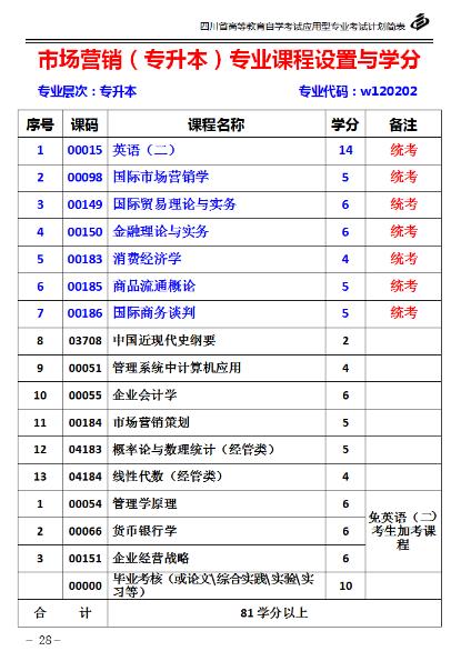 免考英语(二)加考课程:管理学原理、货币银行学、企业经营战略