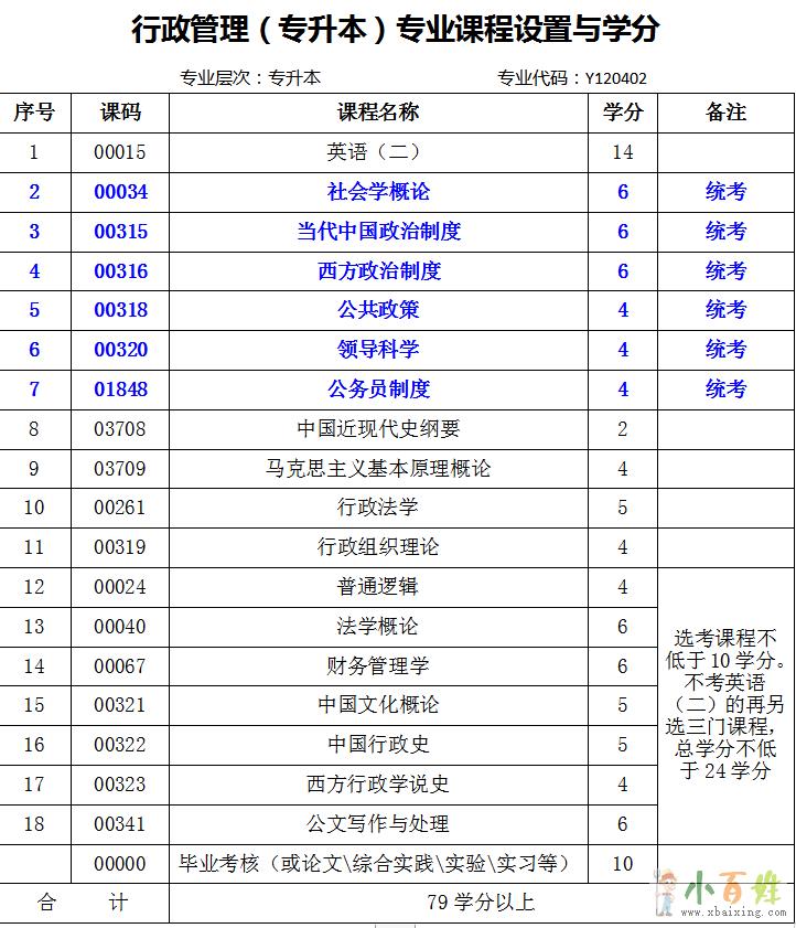 备注:蓝色字体为统考科目