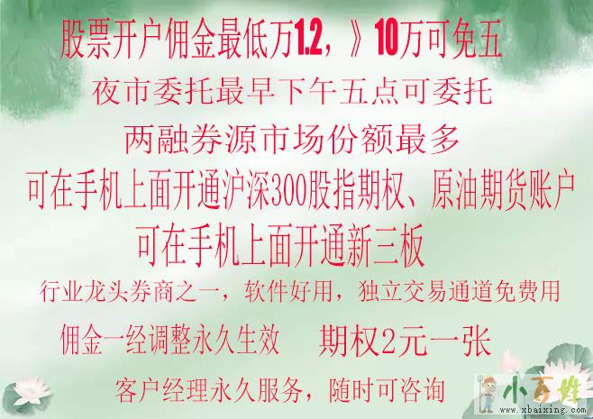 股票开户佣金万1.2,可以申请免五