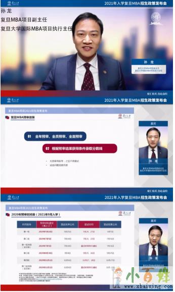 2020年4月11日,2021入学复旦MBA首场招生政策发布会热烈举行小 百 姓 网。为了进一步巩固防疫成果,本次发布会通过直播的形式在“云端”展开。