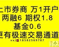 股票开户,万一免五!股票开户,万一免五!股票开户,万一免五!1、A股佣金万1.2,量大万1,可以取消五元限制!2、基金万0.6,量大万0.5,可以取消五元限制!3、融-资-融-券佣金万1.5,量大万1,融-资利率6.0(支持量化交易,程序化交易,实现T+0!)4、债券万0.5,国债逆回购三折5、期权3元一张,量大2元6、港股通万1.5!..